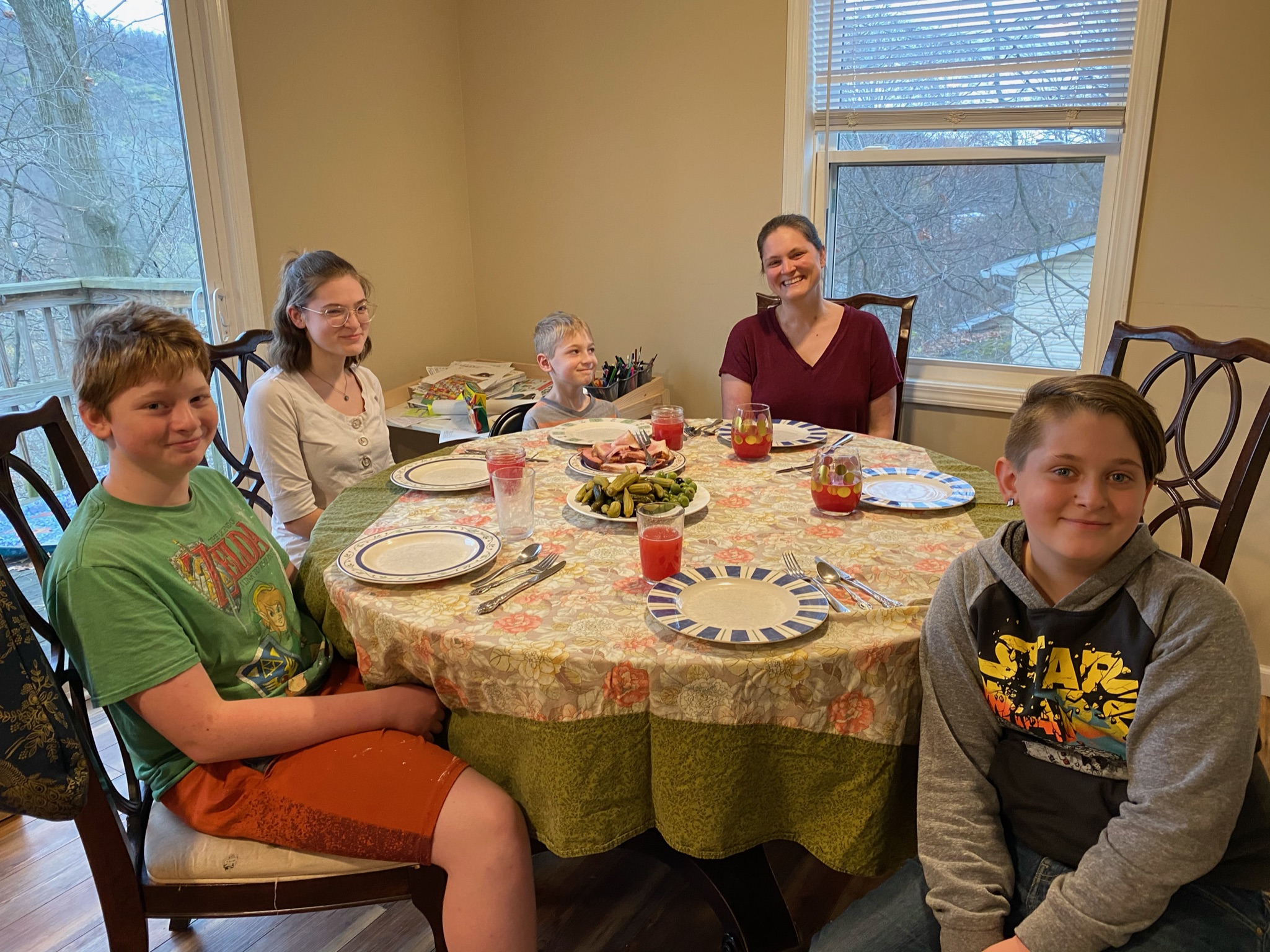 The meal was over. The kids disappeared quickly back into a game of Mario Kart and John retreated to the quiet of our bedroom downstairs. I found myself sitting alone at the table staring at the overflowing counters and empty tablecloth. Dietrich flitted back and forth as he explained to me how this wasn’t actually the “feast” he had expected, and yet also claimed to be full. You have to read between the lines with him to be able to see the competing picture of expectations and reality in his head.