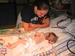 The nurse says that Emma actually started waking up in the night, but the doctor wants her to have lots of rest, so they upped her meds and she went back to sleep. In the morning, her electrolyte level was low and her kidneys weren’t doing as well as they’d like, so they put her on dialysis and added electrolytes via IV. Didn’t last long though, she recovered nicely and was soon back off that machine.