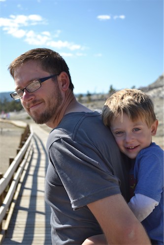 Seth_piggyback_Mammoth July 26, 2012 ~ miriamlein Seth can only “hike” about 1/4 mile. We are looking forward to his legs getting a bit longer.