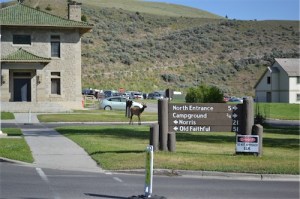 yellowstone July 26, 2012 ~ miriamlein Apparently it is quite common to see elk or mule deer (not sure which this is) near the buildings in Yellowstone.