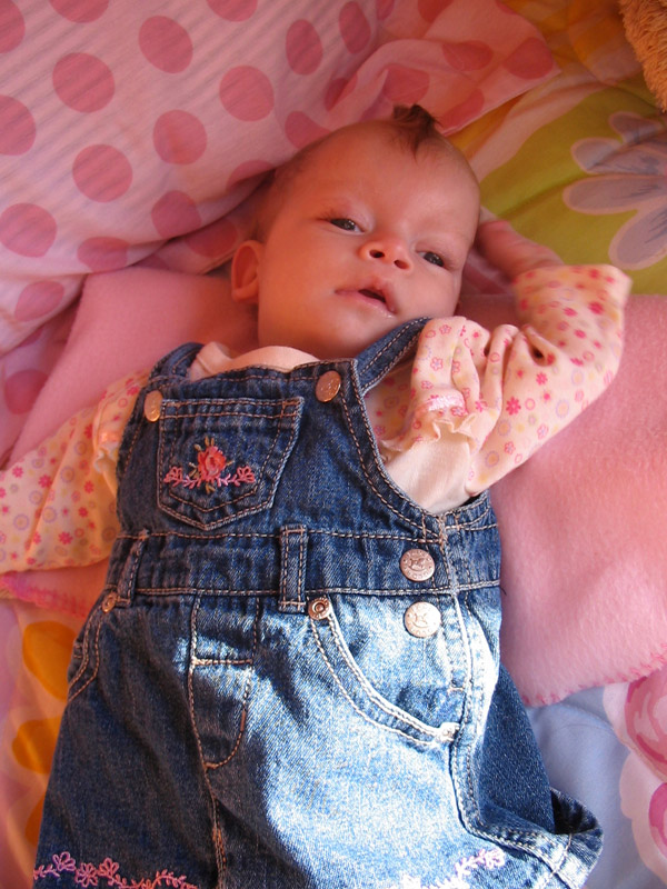She has apparently decided she doesn’t want to sleep on her back anymore, so she’s rolling onto her side now. That’s a first!