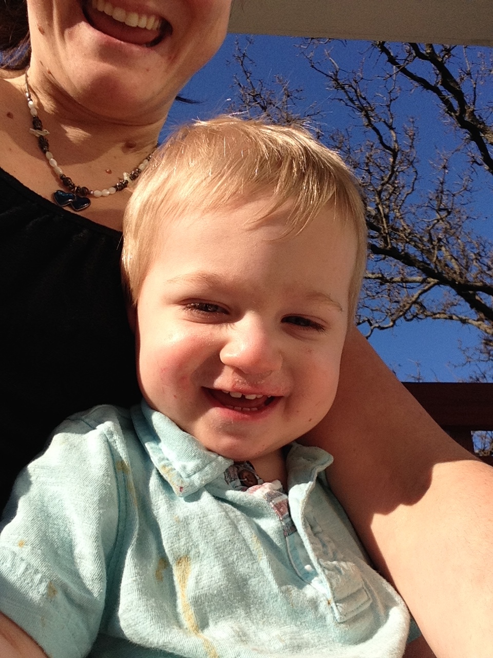 So, we played Carcassone, which made everyone happy except Seth. But he decided to play on my team and actually did seem to enjoy himself. It was really close, but Elise won the game. Since the sun was peaking out of the clouds, the kids decided they want to go play outside again. I assigned them the task of putting away the game, and went to take care of some other stuff. IMG_0723Dietrich had woken during the game after an epic 4 hour nap. He was so happy.