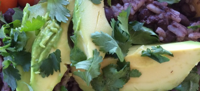 Lunch: Black Beans and Rice. It was just Elise, Dietrich and I again for lunch, but we had pretty much the same things we’d had for supper on Thursday except I topped mine with avocado and cilantro and we also had carrots.